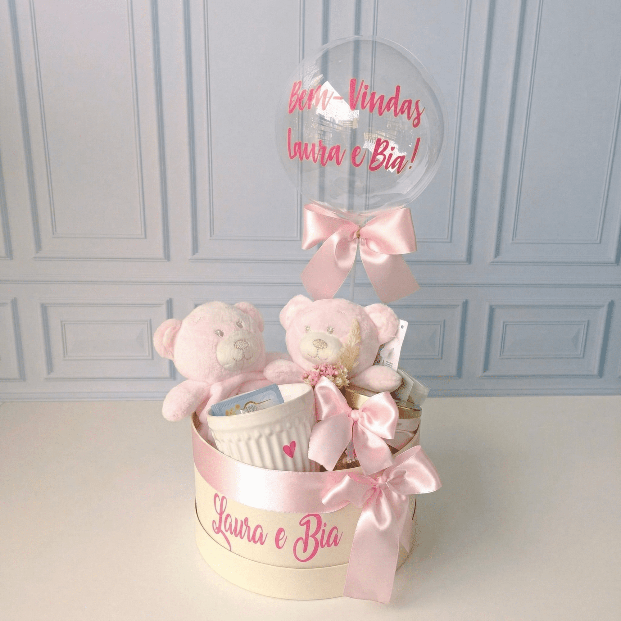 Bem-vindo(a) Composição: Caixa cartonada personalizada Urso de pelúcia